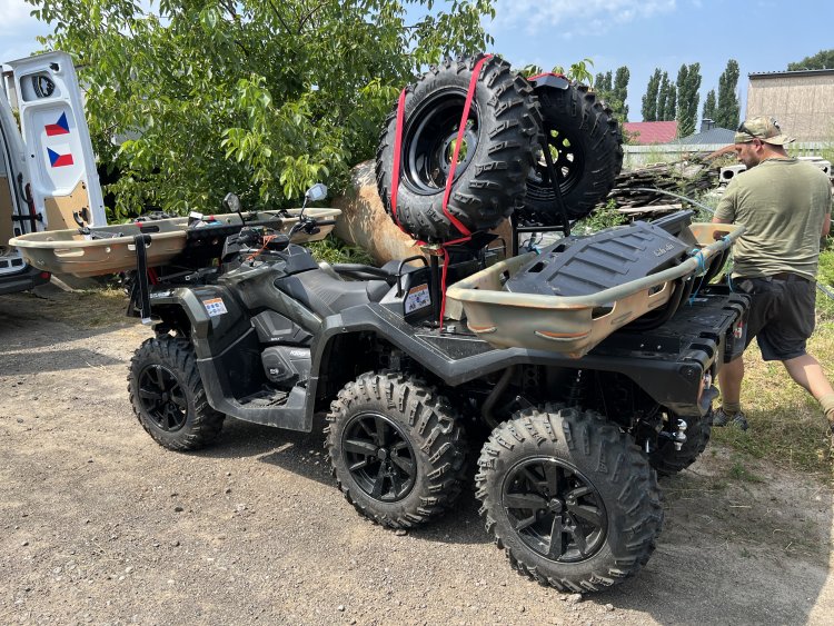 Obránci Ukrajiny dostali speciální šestikolovou motorku, drony a další vybavení